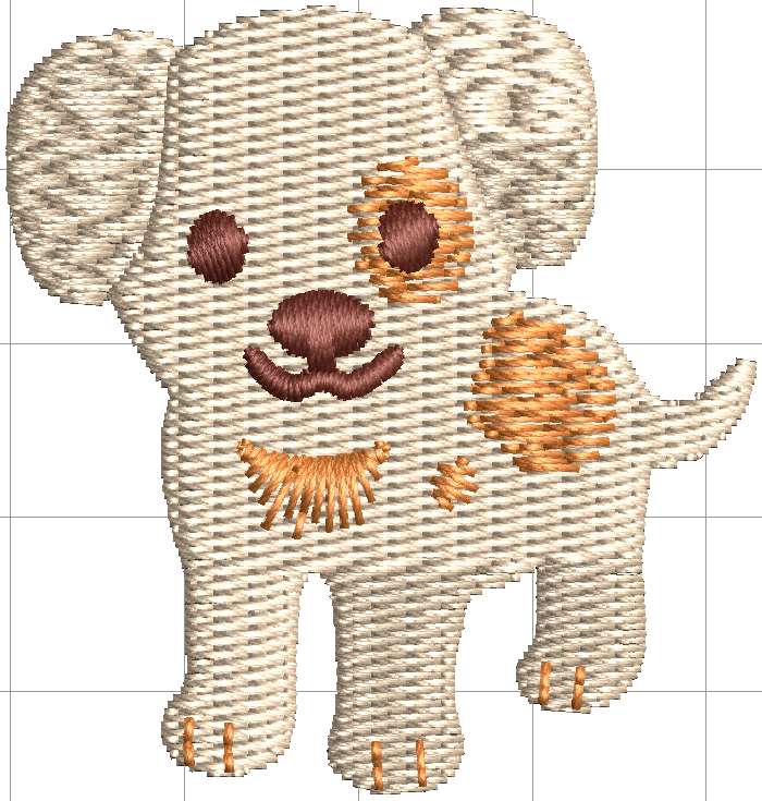 Motif de broderie (dog de la police Noto) avec superpositions diverses.